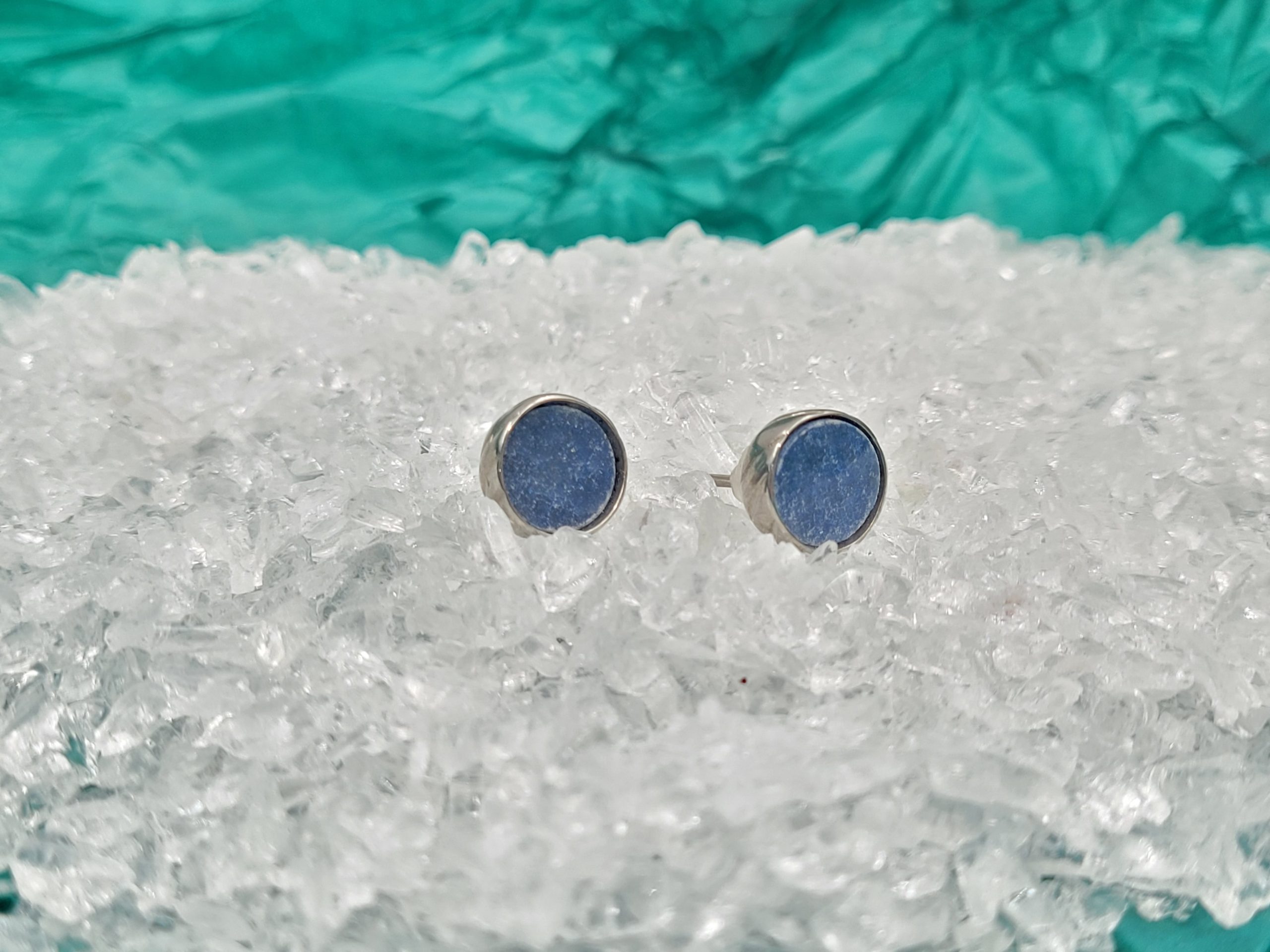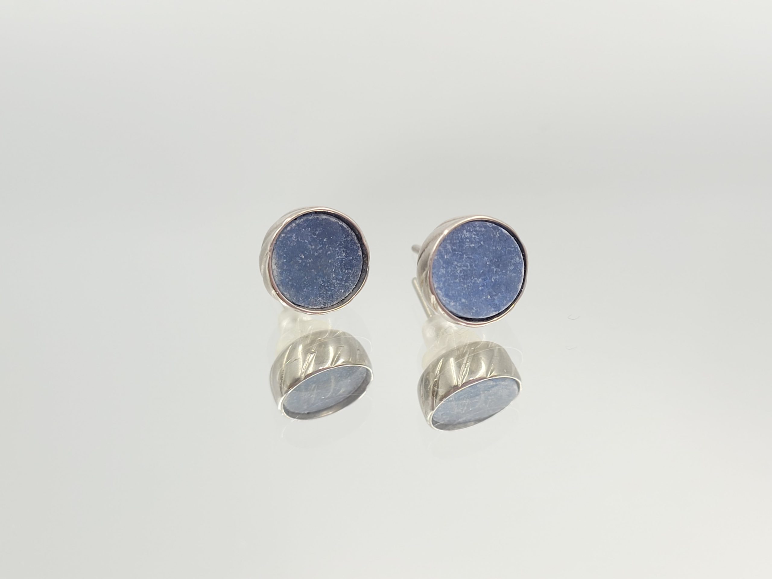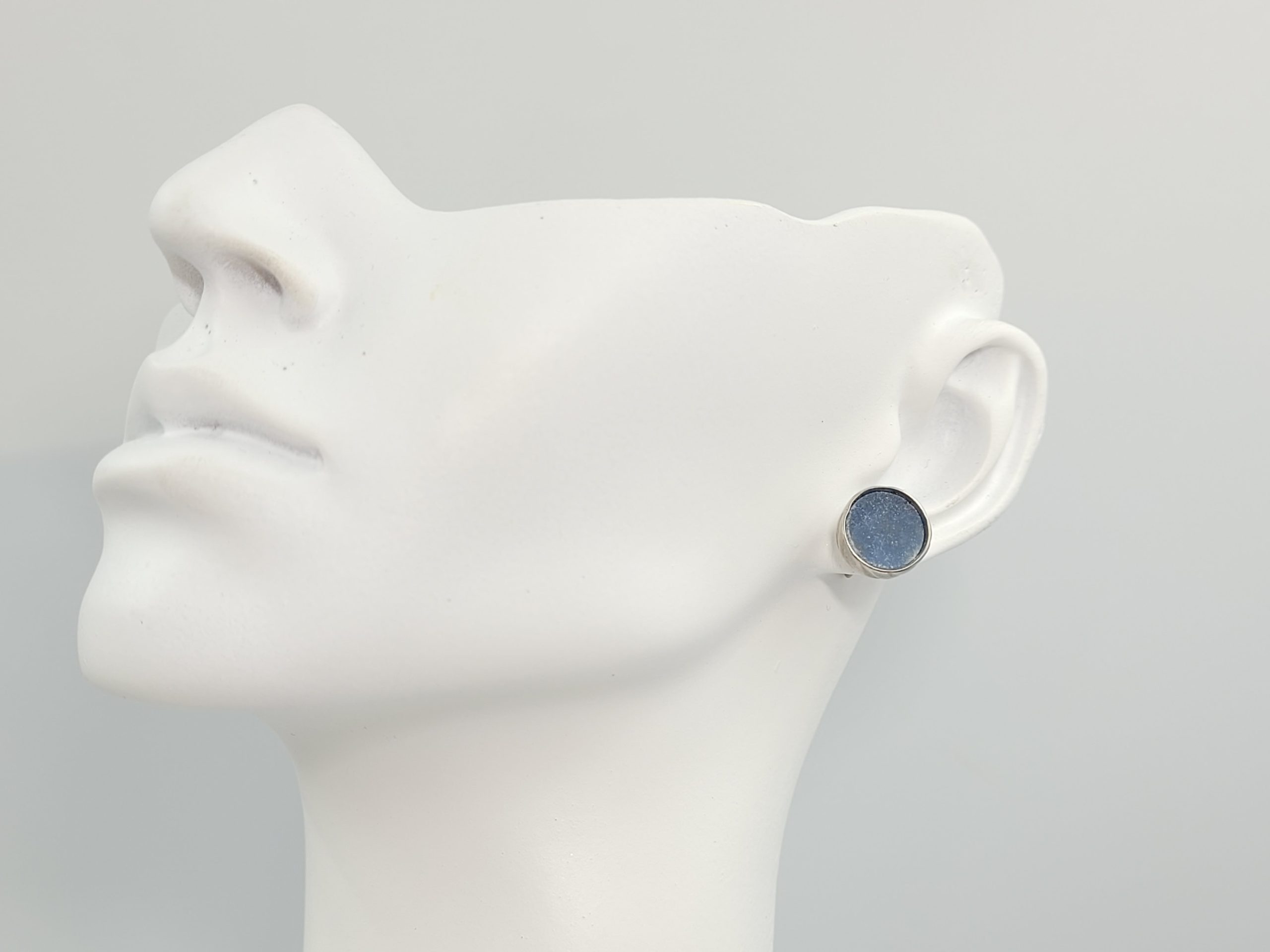 A one-of-a-kind handcrafted pair of earrings featuring a round natural chalcedony mineral, it makes a bold statement with its striking color and soft, soothing texture.