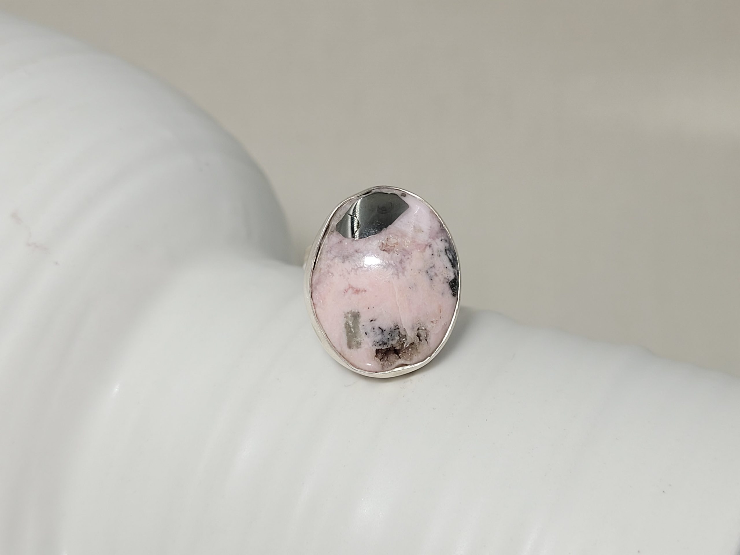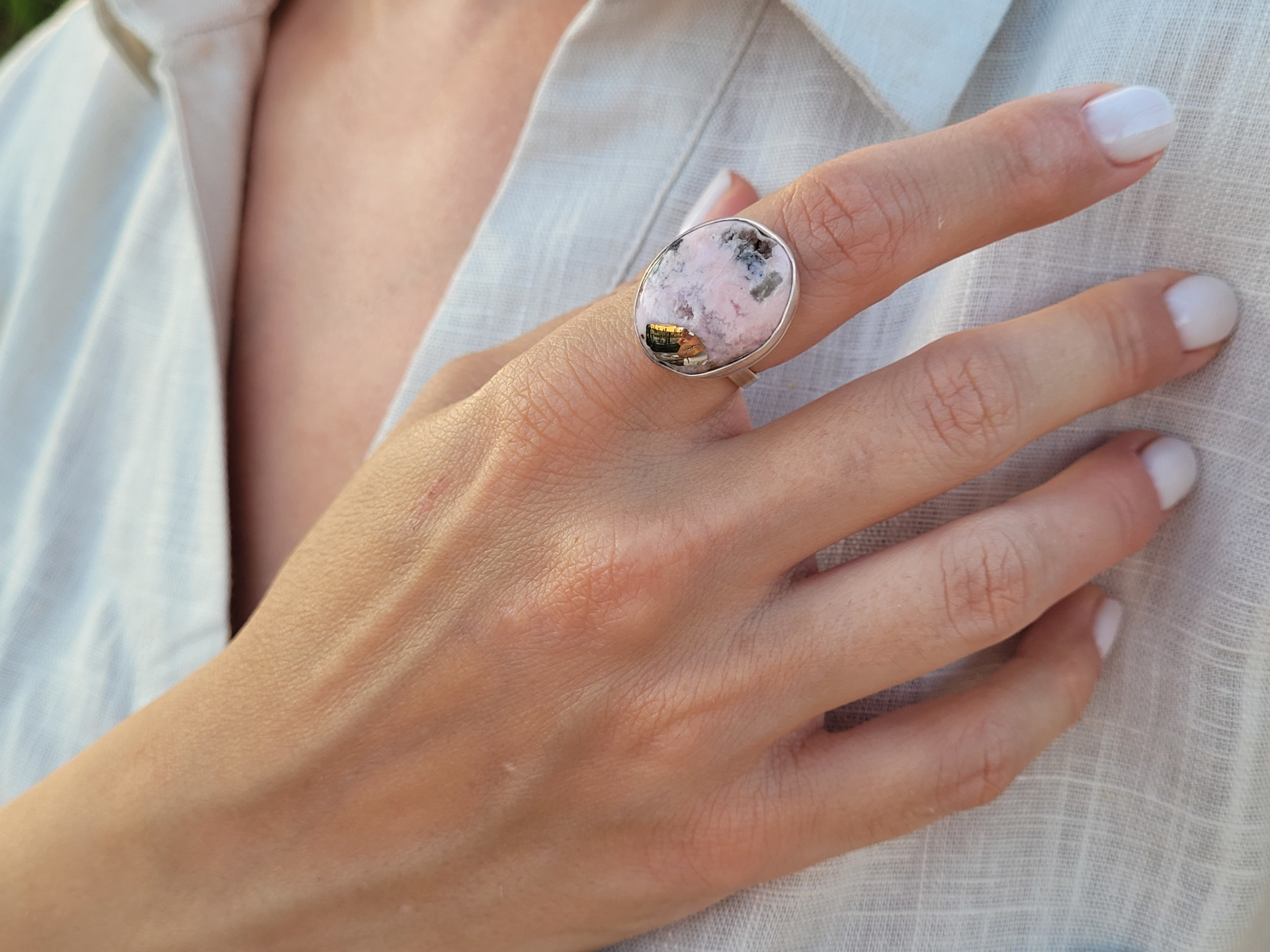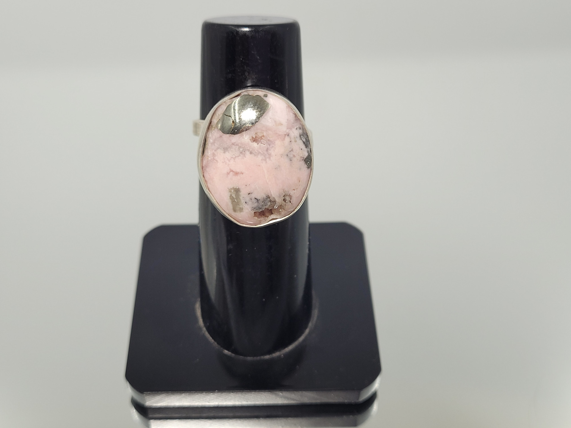 Add a touch of elegance with this handcrafted ring, featuring a naturalgenuine Rhodochrosite-Pyrite gemstone for a minimal and elegant look.